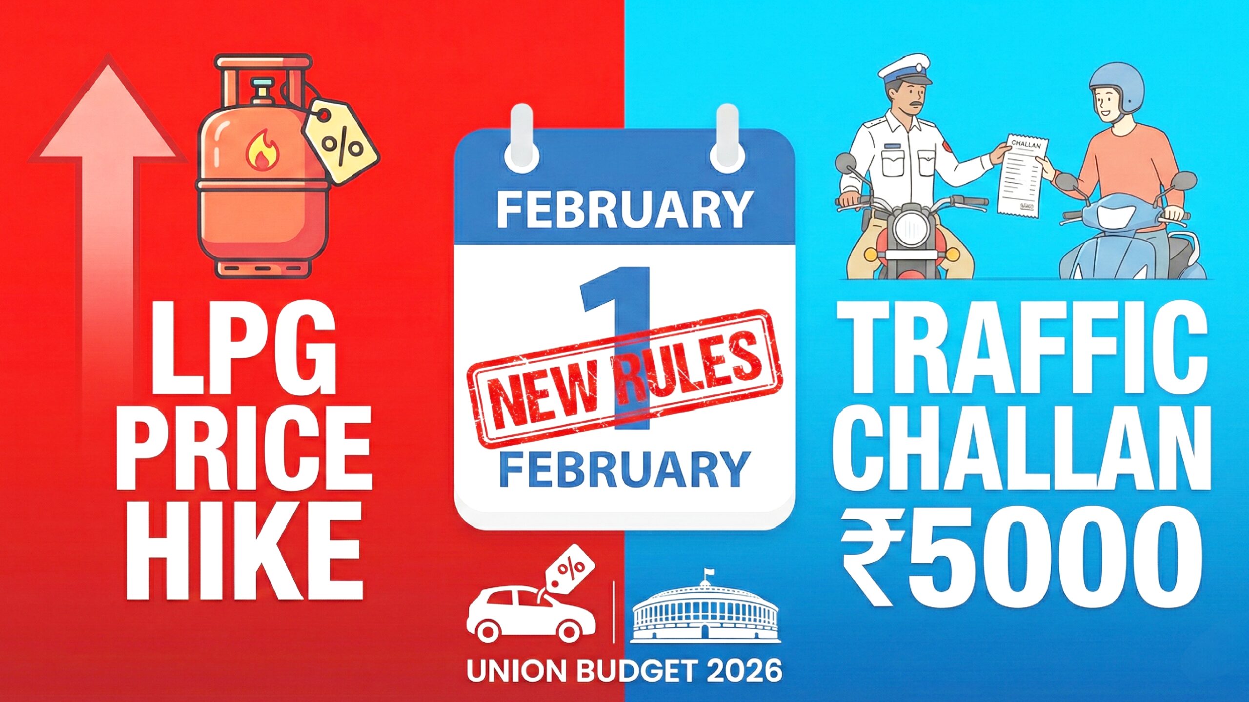 अगर आप जानना चाहते हैं कि 1 February 2026 New Rules in Hindi क्या हैं और LPG सिलेंडर, ट्रैफिक चालान और बैंकिंग में क्या बदलेगा, तो यह आर्टिकल पूरा पढ़ें। ये 1 February 2026 New Rules आपकी जेब पर सीधा असर डालेंगे।